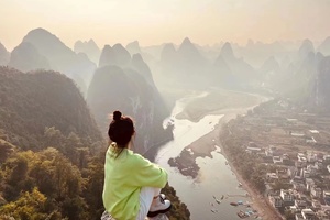 14:30-17:30下午,如果不塞车的话(塞车或下雨就不去),体能较好的小伙伴可跟着领队爬老寨山(阶梯路,单程约30分钟路程),登上老寨山,可俯瞰漓江大拐湾和兴坪古镇全景(不登老寨山的小伙伴可闲逛兴坪古镇)。