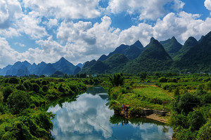 乘坐竹筏游【漓江】(碧岩阁-草坪/草坪-碧岩阁段),漓江两岸群峰连绵,相映成趣,感受“分明看见青山顶,船在青山顶上行”的绝妙景致,让您在这如梦如幻的人间仙境中,体验到“桂林山水甲天下”诗句的由来。与漓江水0距离接触,是真正的游山玩水,漓江竹筏被称之为”水中法拉利“。乘竹筏游览,是体验漓江美景最好玩的游览方式