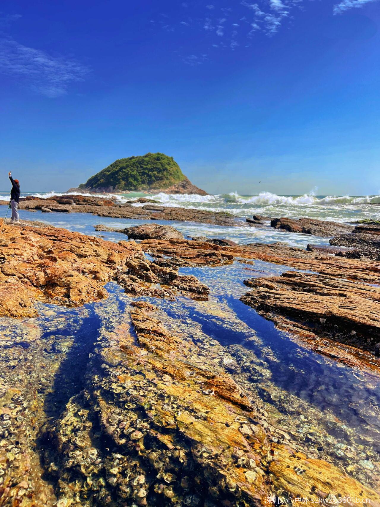 广东天空之境到底有多美“黑排角”海岸线位于广东惠州惠东县红海湾东山海一段海岸线,依靠观音山——妈宫山山脉,背山面海。因礁石是黑色的,被驴友起名为“黑排角”。这里很久以前只是一个渔村,在户外圈里属于小众、风景却五颗星的徒步路线,可以媲美深圳最美徒步路线东西冲。白色的细沙,绿色的海带青苔,天蓝色的海水,这简直美哭~就算不用滤镜也可以拍出漂亮的大片出来!