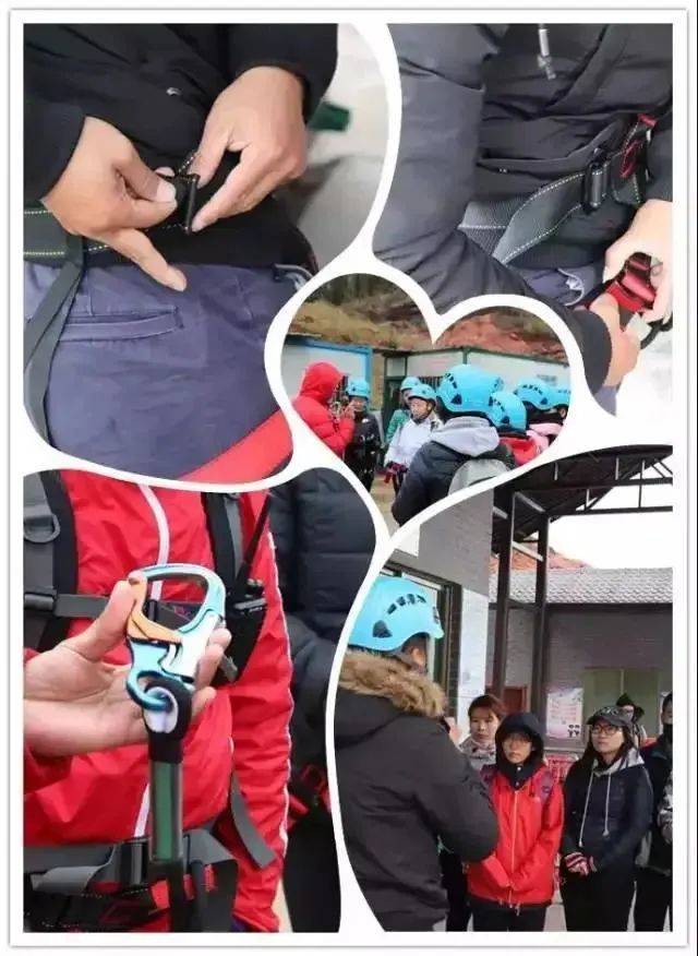 3、安全衣穿戴听从教练的指示正确穿戴飞拉达装备,穿安全衣时紧身带一定要穿在腰上的位置,所有穿戴口都要贴身锁紧,这样在攀岩的过程中安全才会有保障。