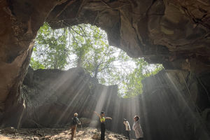 对“未知”领域、事物孜孜不倦的探索,有的岩洞洞口狭窄,仅可排成一列通过,洞内却藏有一番天地,光影倾泻,宛若神仙隐居之境。