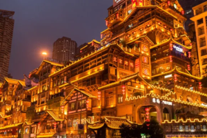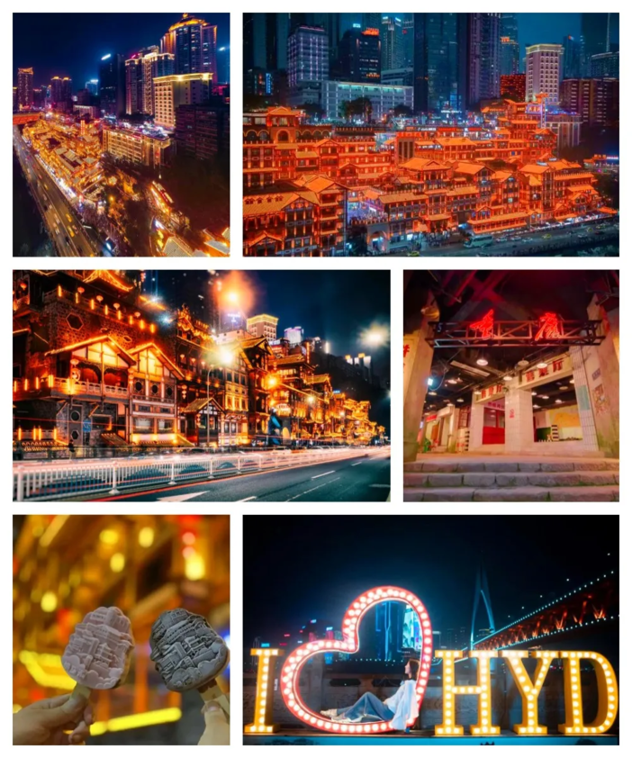 后前往 【洪崖洞商业街】是逛山城老街、观赏两江风光、品尝当地美食的好去处。商业街位于渝中区沧白路,长江、嘉陵江两江交汇的滨江地带,以具有巴渝传统建筑特色的“吊脚楼”为主体,依山就势,沿江而建。夜景美爆了洪崖洞由纸盐河酒吧街、天成巷巴渝风情街、盛宴美食街及异域风情城市阳台四部分组成,以最具巴渝传统建筑特色的吊脚楼为主体,依山就势,通过分层筑台、吊脚、错叠、临崖等山地建筑手法,把这一片建筑汇聚在一起,夜晚时候灯火通明,堪称山城一景。