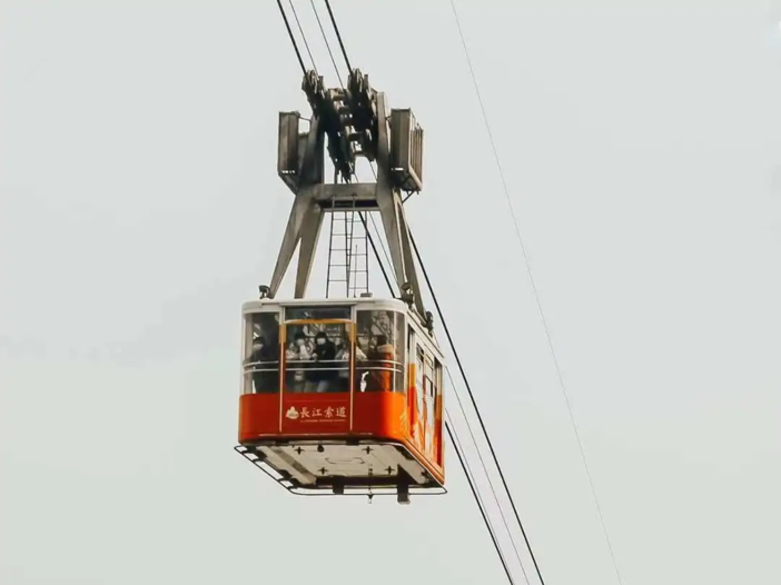 早餐后前往【长江索道】索道全长1166米,全程运行约5分钟,客厢定员80+1人,设有抗5-6级风力的防摆装置,具有安全、环保、快捷、方便、准点、全天候运行等特点。乘坐索道可远眺重山叠嶂,近观两岸风光,俯视滚滚长江,体验腾空凌云之感,是出行、休闲、旅游观光理想的交通工具,是重庆独具特色的城市基础设施景观,也是重庆独有的一道文化符号。