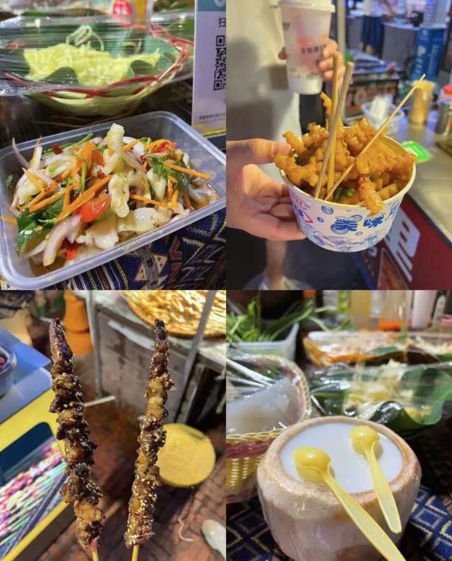 星光夜市,这是西双版纳标志性夜市,里面很多穿傣族服饰的摊主,贩卖着西双版纳各式各样带有民族气息的小配件和好吃的,在星光夜市大家可以租一套傣服,边拍边吃边游玩,这样的体验感更强。