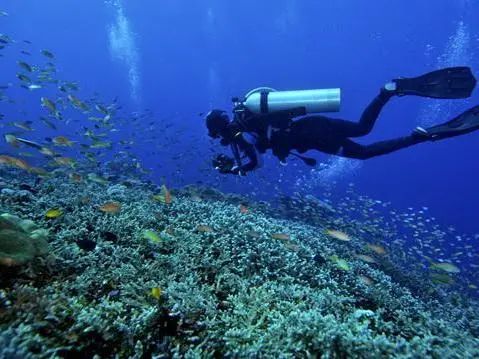 各种海上娱乐设施自费,潜水(自愿)自费体验潜水:穿上潜水服,背上氧气瓶,戴上潜水镜,经过简单的培训,在潜水教练(一对一)的陪伴下,将会轻松的成为一位海底使者, 潜水可潜入合适的深度,去打开海底世界的奥妙之窗,同鱼共舞。