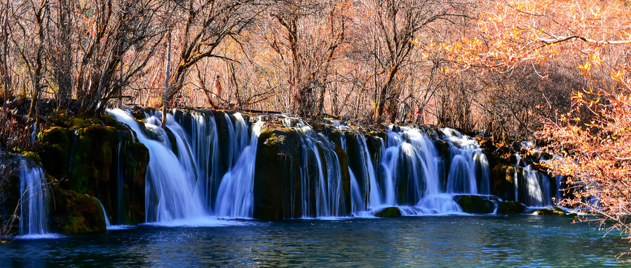 翠海、叠瀑、彩林、雪峰、藏情、蓝冰,被誉为九寨沟“六绝”。
