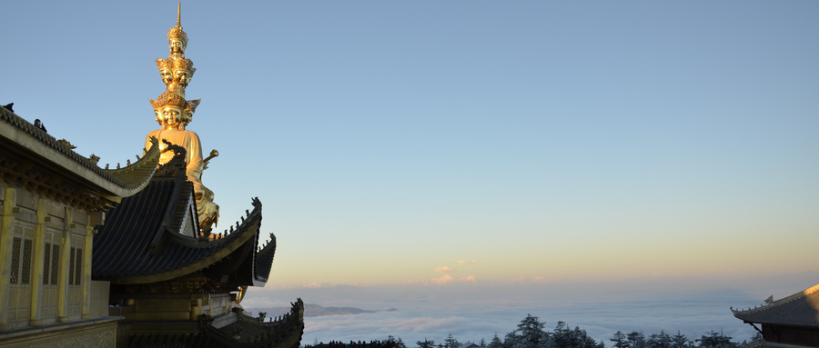 早餐后乘观光车(自理)至雷洞坪,步行半小时(1.5km)至接引殿,乘坐索道(上65/人,下55/人,自理)登至峨眉主峰—金顶(海拔3077)在最高的观景平台观云海、佛光、金银铜殿、十方普贤等自然奇观和佛教奇观奇观等,在世界最大的朝拜中心祈福许愿,