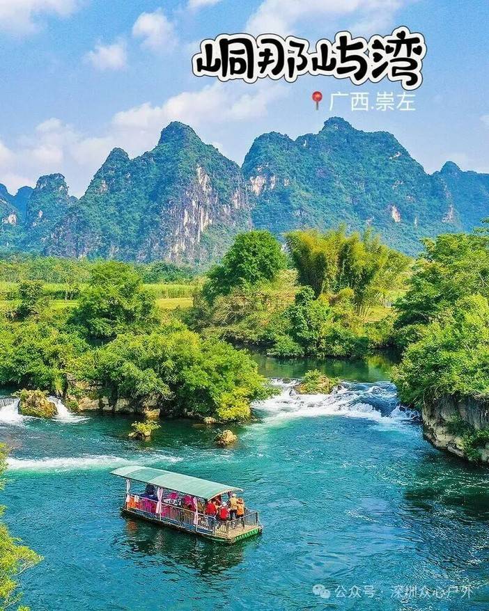 它有奇特的喀斯特地貌、诗意的山水风光、壮观的河流瀑布,古朴神秘的壮族风俗及浓郁的边关风情,所以这一带也被称为“山·海·边的时空穿越”。