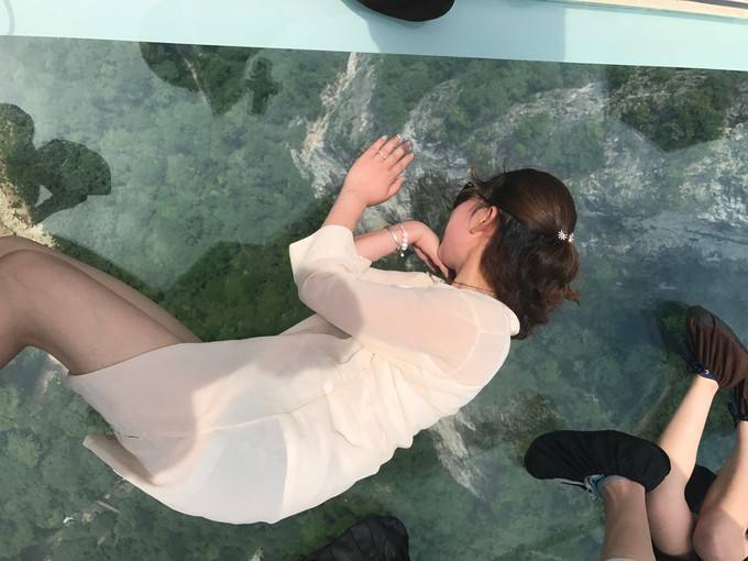 还有惊险刺激的【盘龙崖玻璃栈道】玻璃栈道是张家界天门山景区继悬于峭壁之上的鬼谷栈道、凭空伸出的玻璃眺望台、横跨峡谷的木质吊桥后打造的又一试胆力作。