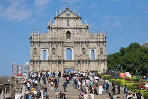 10:00  游览具有标志性地标建筑的圣保罗教堂遗迹,列入世界遗产的中西合璧的石壁在全世界的是独一无二的天主教教堂【大三巴牌坊】